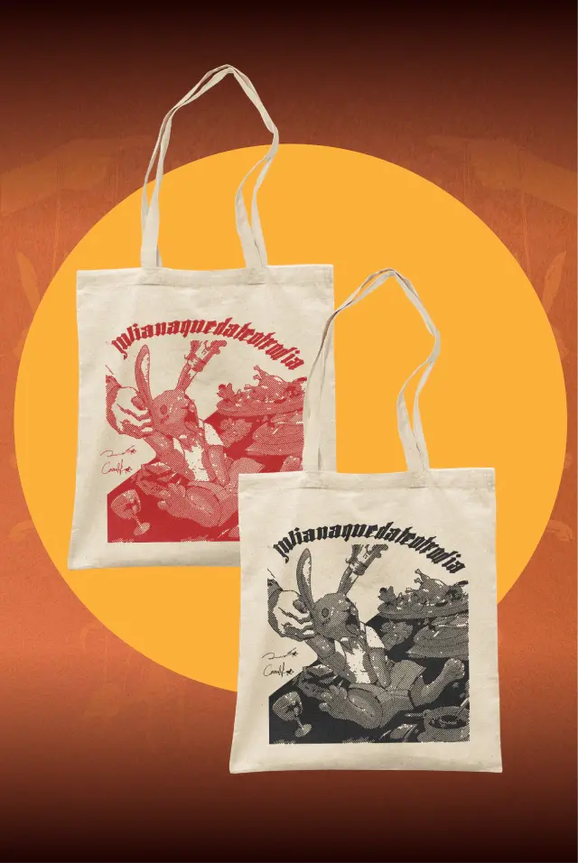 Juliana Quédate otro Día - Totebag blanca estampados negro y rojo - Diseño A -